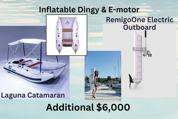 Laguna catamaran inflatable dinghy and RemigoOne electric outboard are available for an additional $6000