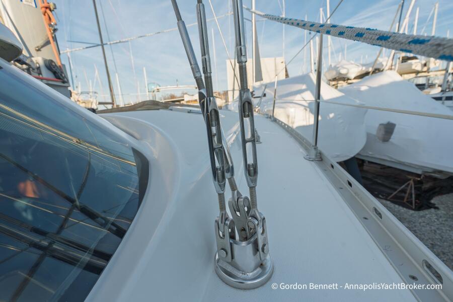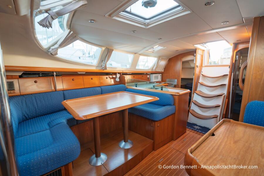 “Margaritaville” is a beautifully kept, single-owner Jeanneau Sun Odyssey 43 DS now resting on the hard at Bert Jabin Yacht Yard in Annapolis. Surveyed in October 2025 for the owner by a respected Annapolis area surveyor and rated in above-average condition, she reflects the kind of thoughtful care that stands out in today’s market. This is the desirable two-stateroom and two-head layout with the sought-after large centerline aft stateroom, the shoal draft keel, and in-mast furling that Jeanneau owners appreciate for comfortable and easy cruising. The owners loved this boat so much that they founded the Jeanneau Sailboat Owners Group on the Chesapeake Bay, and after many years of wonderful cruising, they have decided it is time for someone else to enjoy the boat as much as they have. Freshly detailed inside and out with new bottom paint applied in November 2025, “Margaritaville” is clean, bright, and ready for her next chapter.