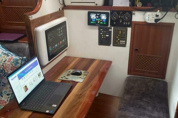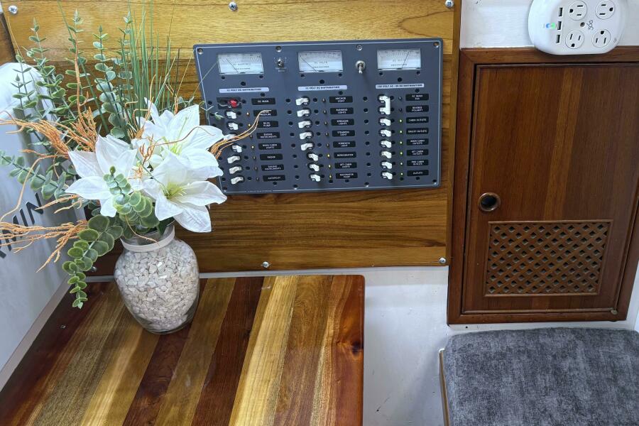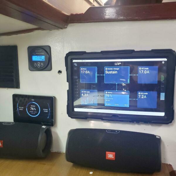- Off-Grid Capability: Equipped with a powerful 24V Victron MultiPlus II system, that’s 2 120V legs, 2000W of solar power, 600 Ah Lithium battery bank, providing the ability to power both A/Cs and a 1800W electric oven at the same time. This Yacht is set up for extended off-grid living with A/C, Wi-Fi, and all modern comforts.