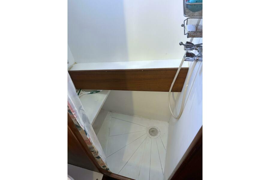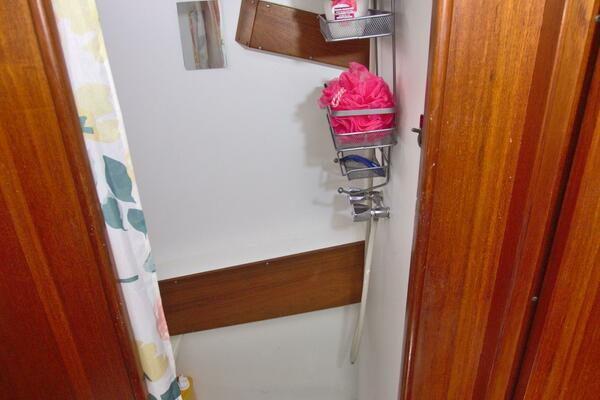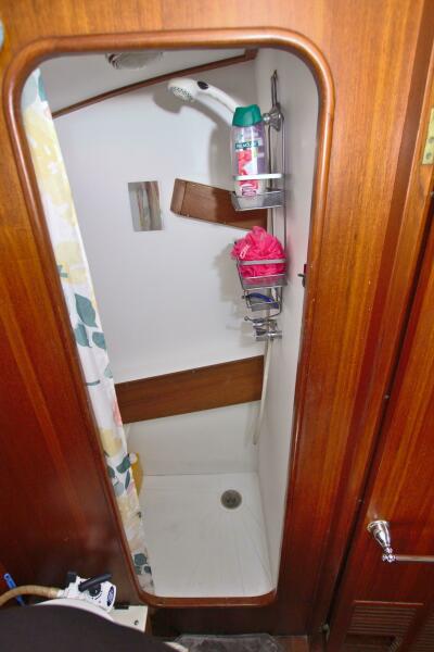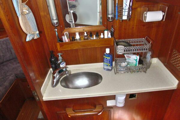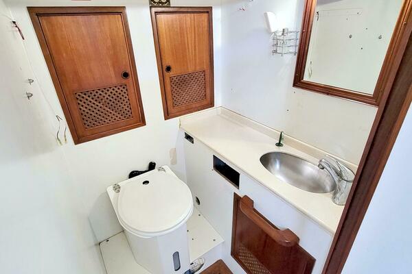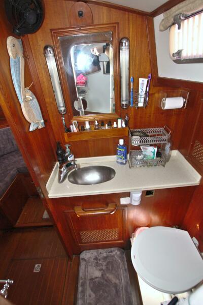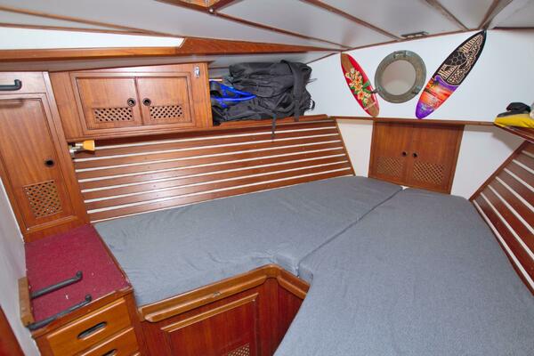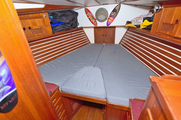 - Forward V-berth: Includes ample storage, 140 gallon water tank and a separate head with a composting toilet.