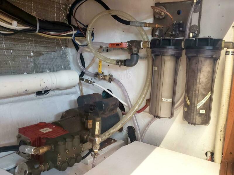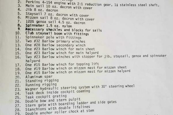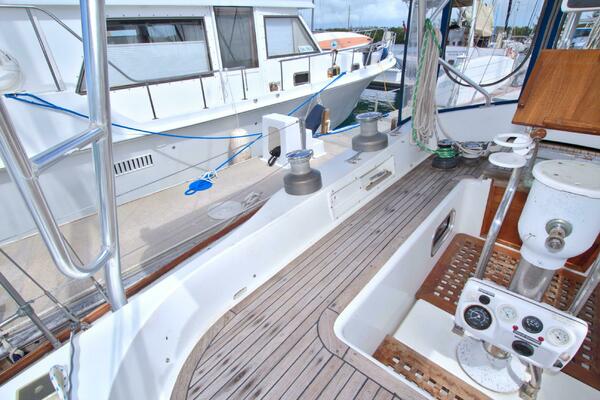- Comprehensive Navigation & Safety Systems: Includes a Garmin 8616sx chartplotter, Raymarine Hydraulic Autopilot, new rigging with new lines, and robust ground tackle, including a 77lb Bruce anchor and 300 feet of chain.