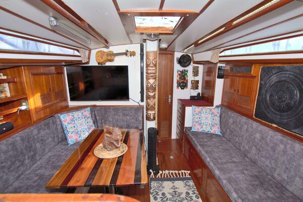 - Exceptional Comfort: Satin varnished teak interior, teak and holly cabin sole, and plush new upholstery, creating a warm and inviting ambiance throughout the vessel.